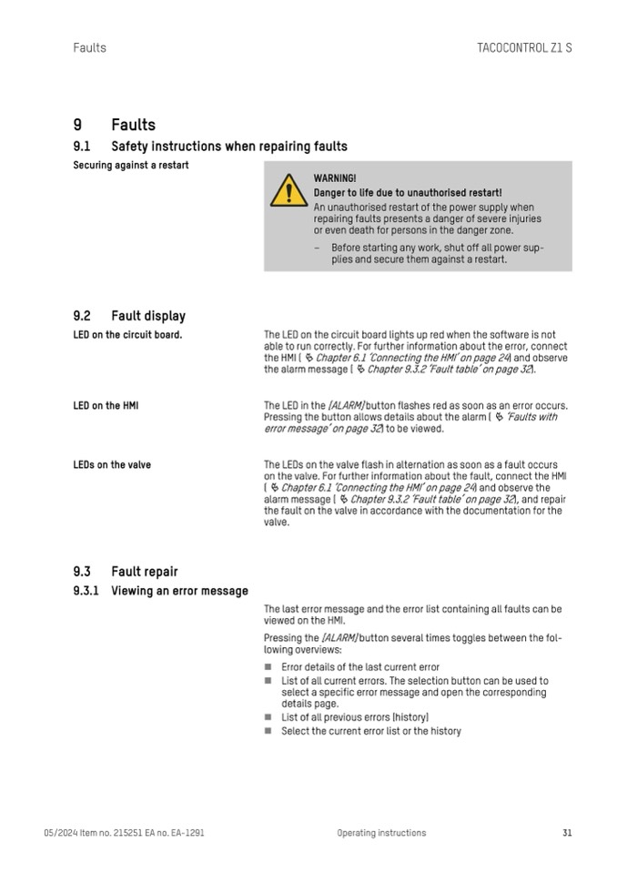 on the valve. For further information about the fault, connect the HMI