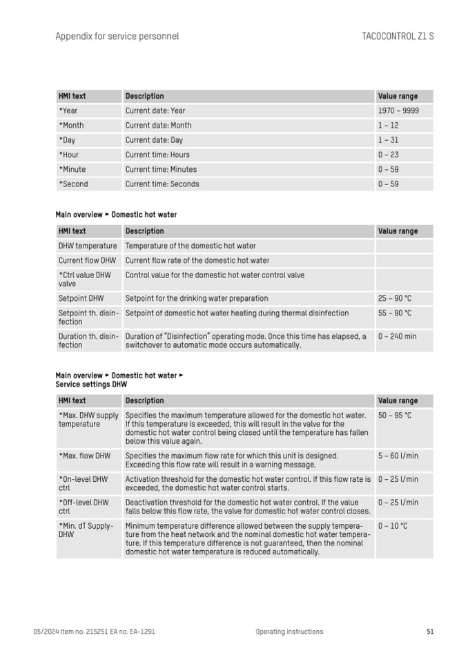 Duration of “Disinfection” operating mode. Once this time has elapsed, a