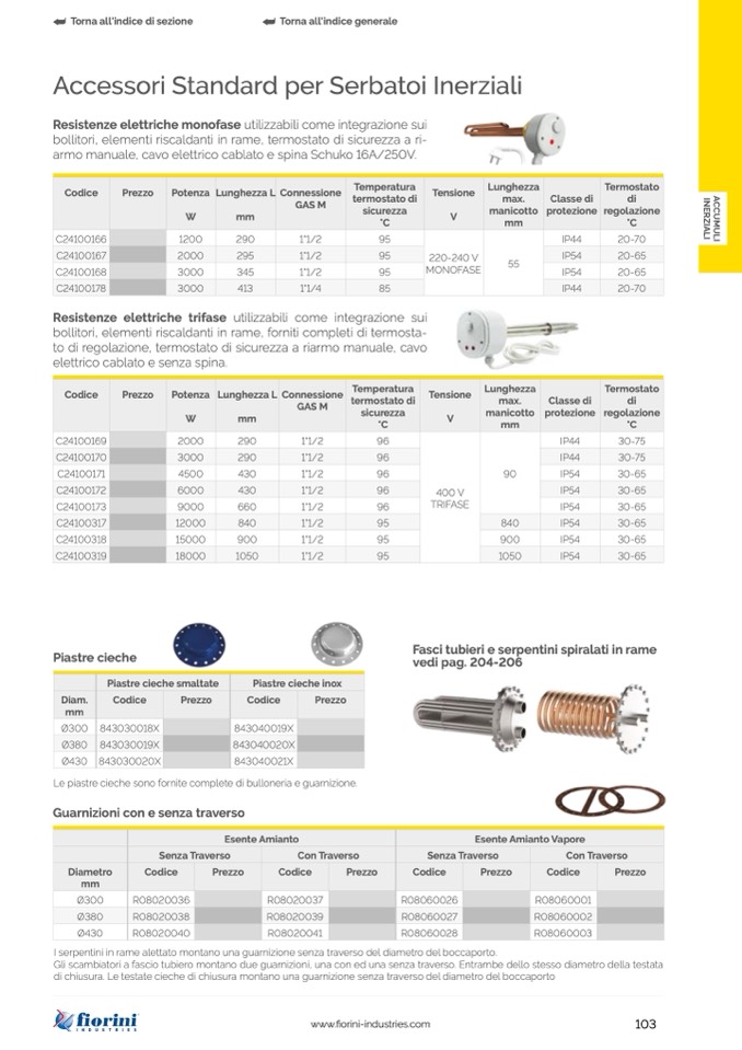 bollitori, elementi riscaldanti in rame, forniti completi di termosta-