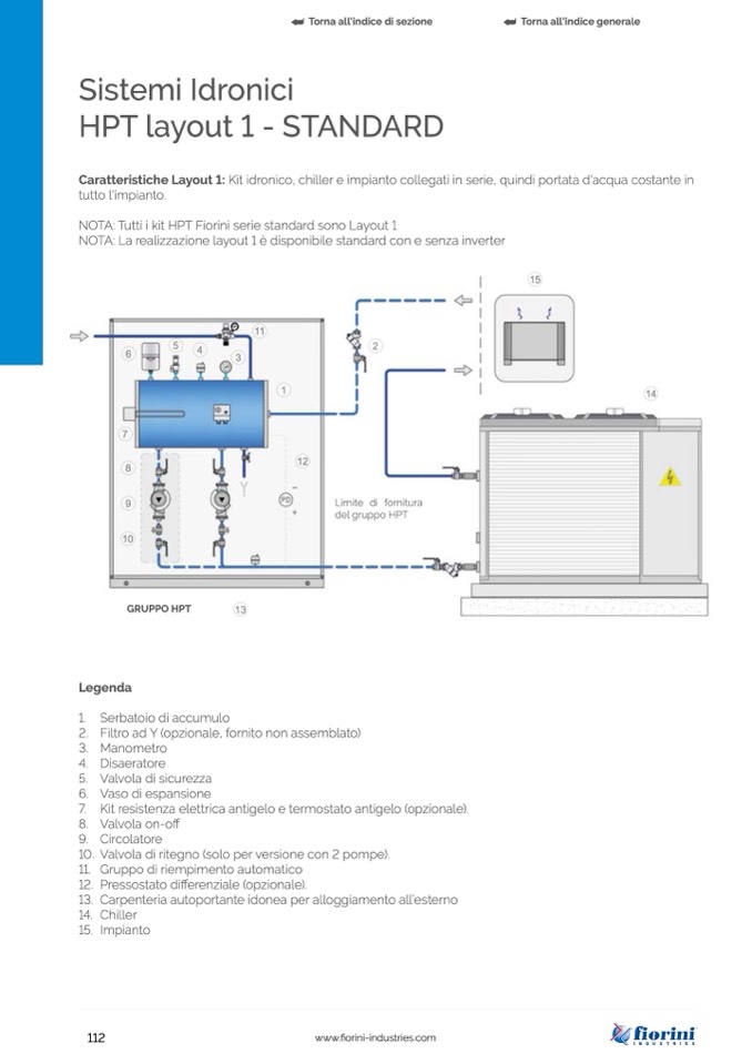 Caratteristiche Layout 1: Kit idronico, chiller e impianto collegati in serie, quindi portata d'acqua costante in