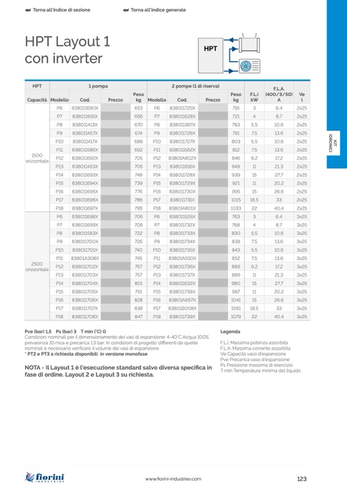 * PT2 e PT3 a richiesta disponibili in versione monofase