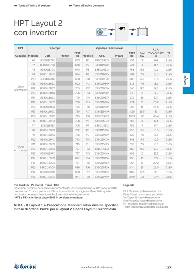 * PT2 e PT3 a richiesta disponibili in versione monofase