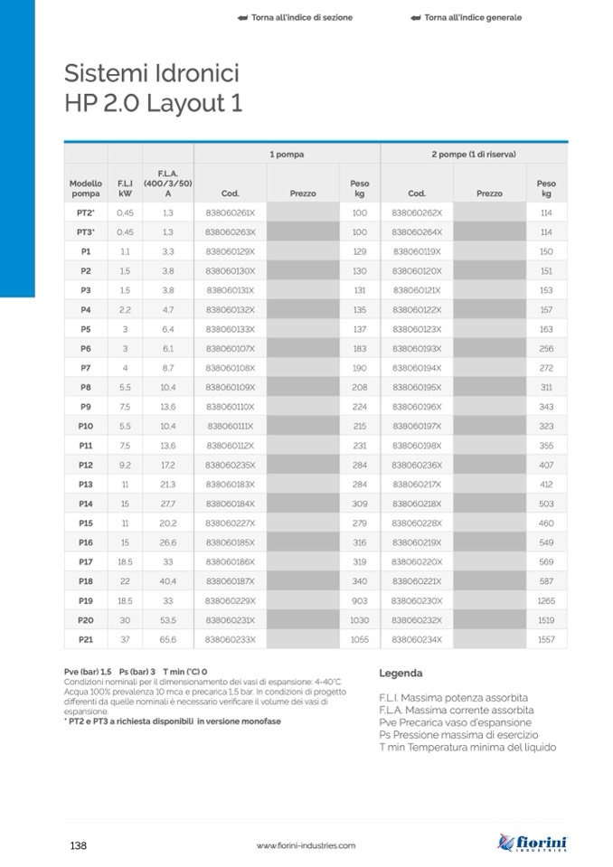 * PT2 e PT3 a richiesta disponibili in versione monofase