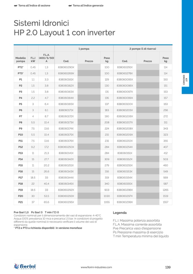 * PT2 e PT3 a richiesta disponibili in versione monofase