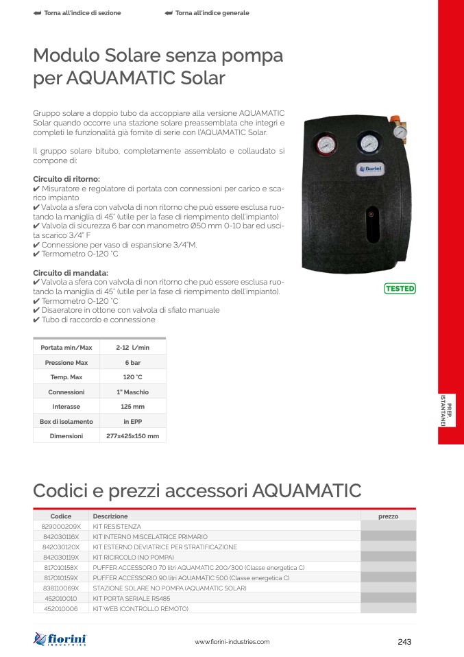 STAZIONE SOLARE NO POMPA (AQUAMATIC SOLAR)
