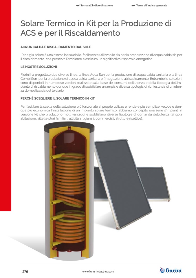 Fiorini ha progettato due diverse linee: la linea Aqua Sun per la produzione di acqua calda sanitaria e la linea