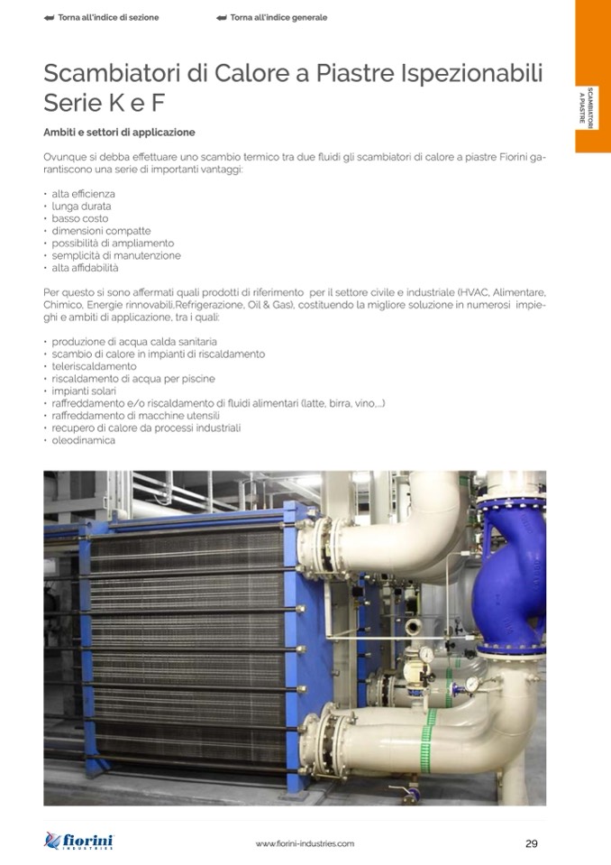 Ovunque si debba effettuare uno scambio termico tra due fluidi gli scambiatori di calore a piastre Fiorini ga-