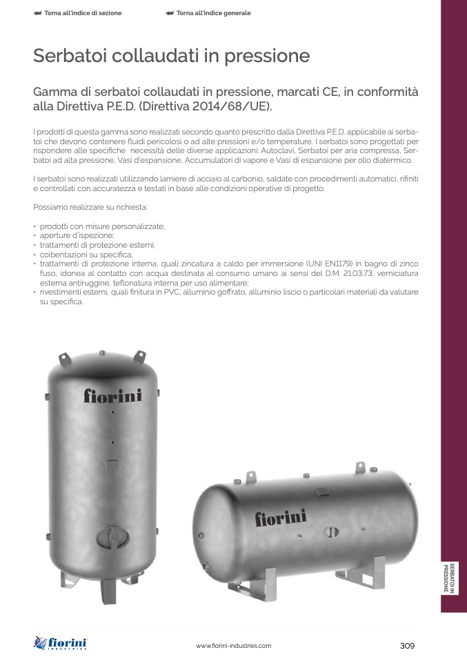 I prodotti di questa gamma sono realizzati secondo quanto prescritto dalla Direttiva P.E.D. applicabile ai serba-
