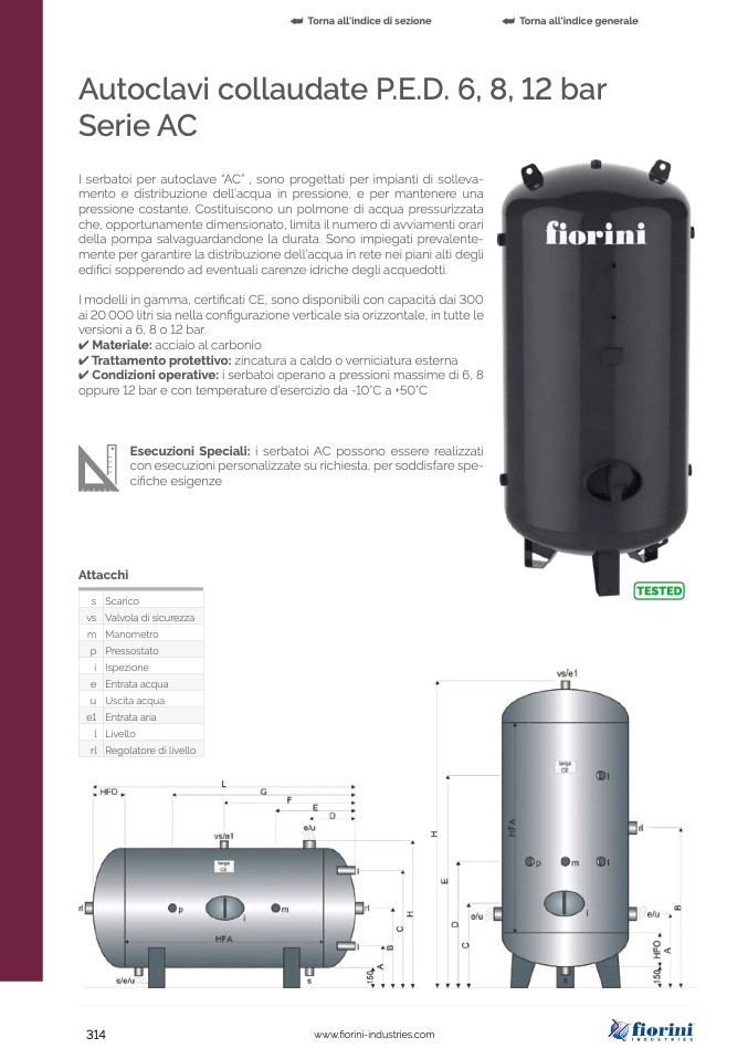 I serbatoi per autoclave “AC” , sono progettati per impianti di solleva-