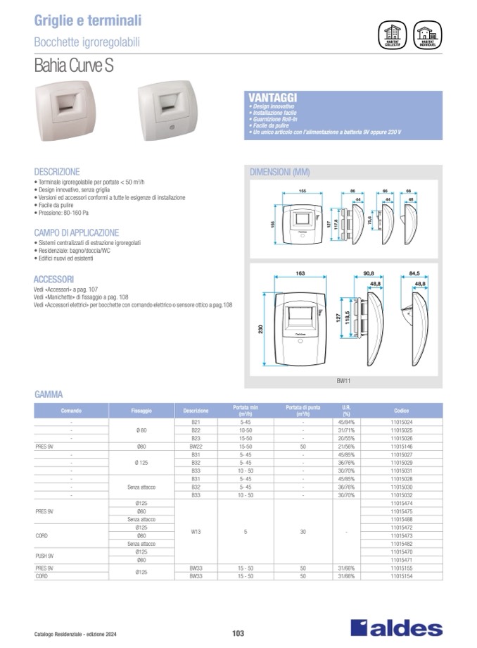 • Versioni ed accessori conformi a tutte le esigenze di installazione