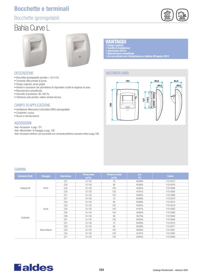 • Ventilazione Meccanica Controllata (VMC) igroregolabil