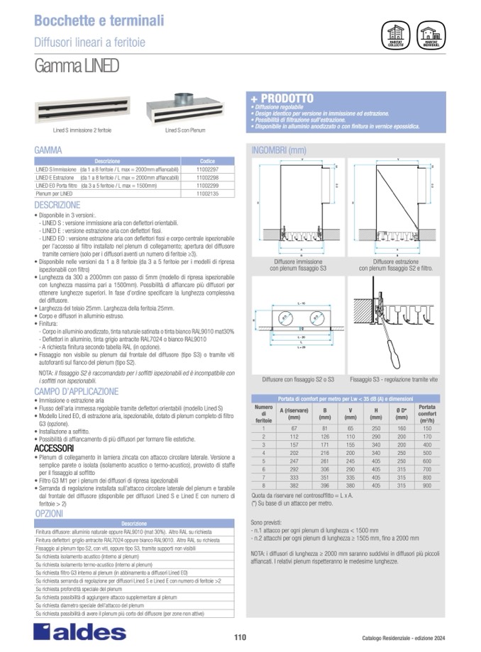 NOTA: i diffusori di lunghezza ≥ 2000 mm saranno suddivisi in diffusori più piccol