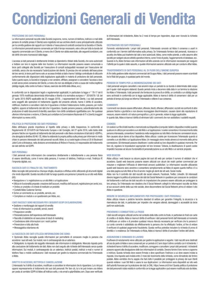 Aldes raccoglie dati personali su chiunque sfoglia, visualizza o effettua ordini utilizzando gli strumenti digitali