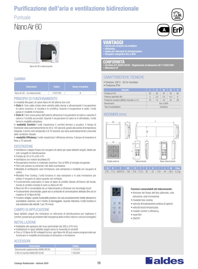 • Nano Air 60 è comandabile da un telecomando a infrarossi con tecnologia touch