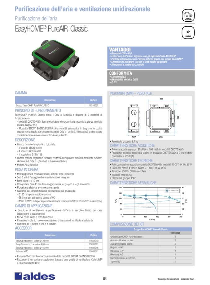 • Potenza acustica gruppo: 39 dB(A) a 100 m³/h in modalità QUOTIDIAN
