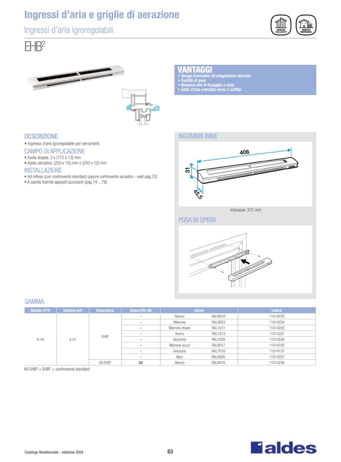 • Ad infisso (con controvento standard oppure controvento acustico - vedi pag.72