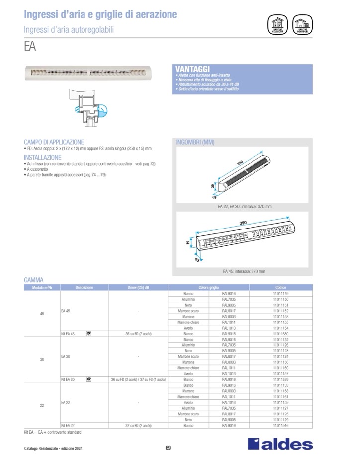 • Ad infisso (con controvento standard oppure controvento acustico - vedi pag.72