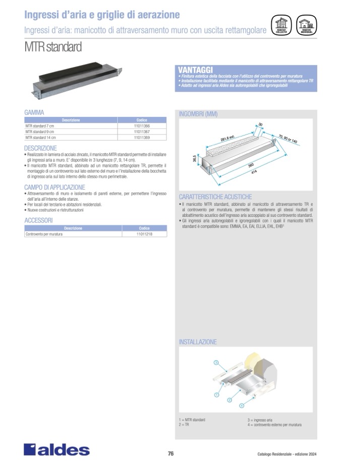 gli ingressi aria a muro. E’ disponibile in 3 lunghezze (7, 9, 14 cm)