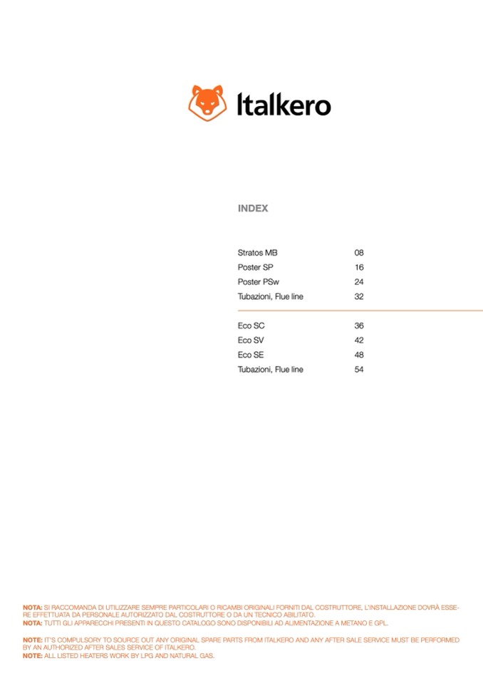 NOTA: tuttI gLI appaRecchI pReSentI In QueStO cataLOgO SOnO dISpOnIbILI ad aLIMentazIOne a MetanO e gpL.