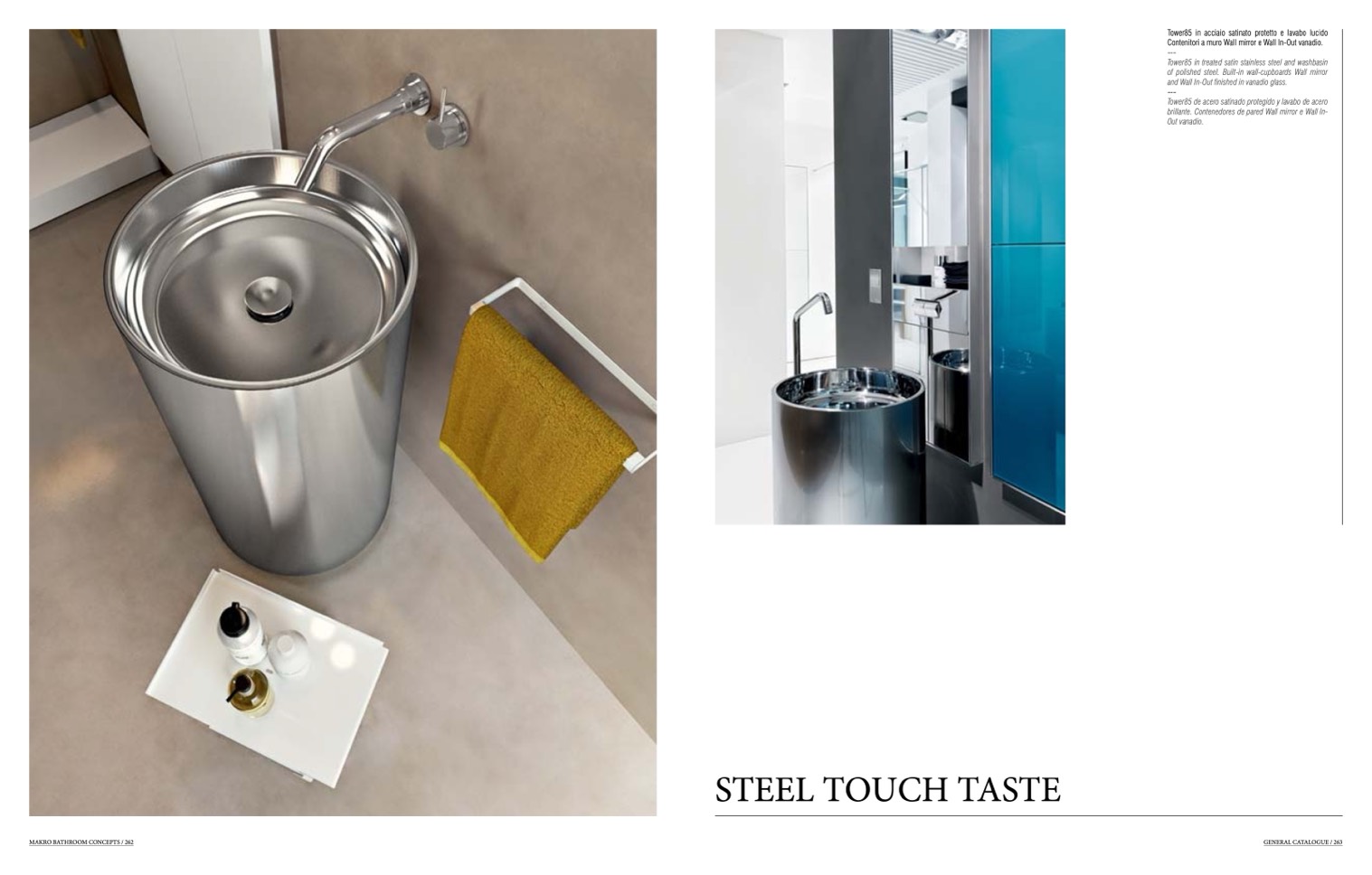 Tower85 in treated satin stainless steel and washbasin
