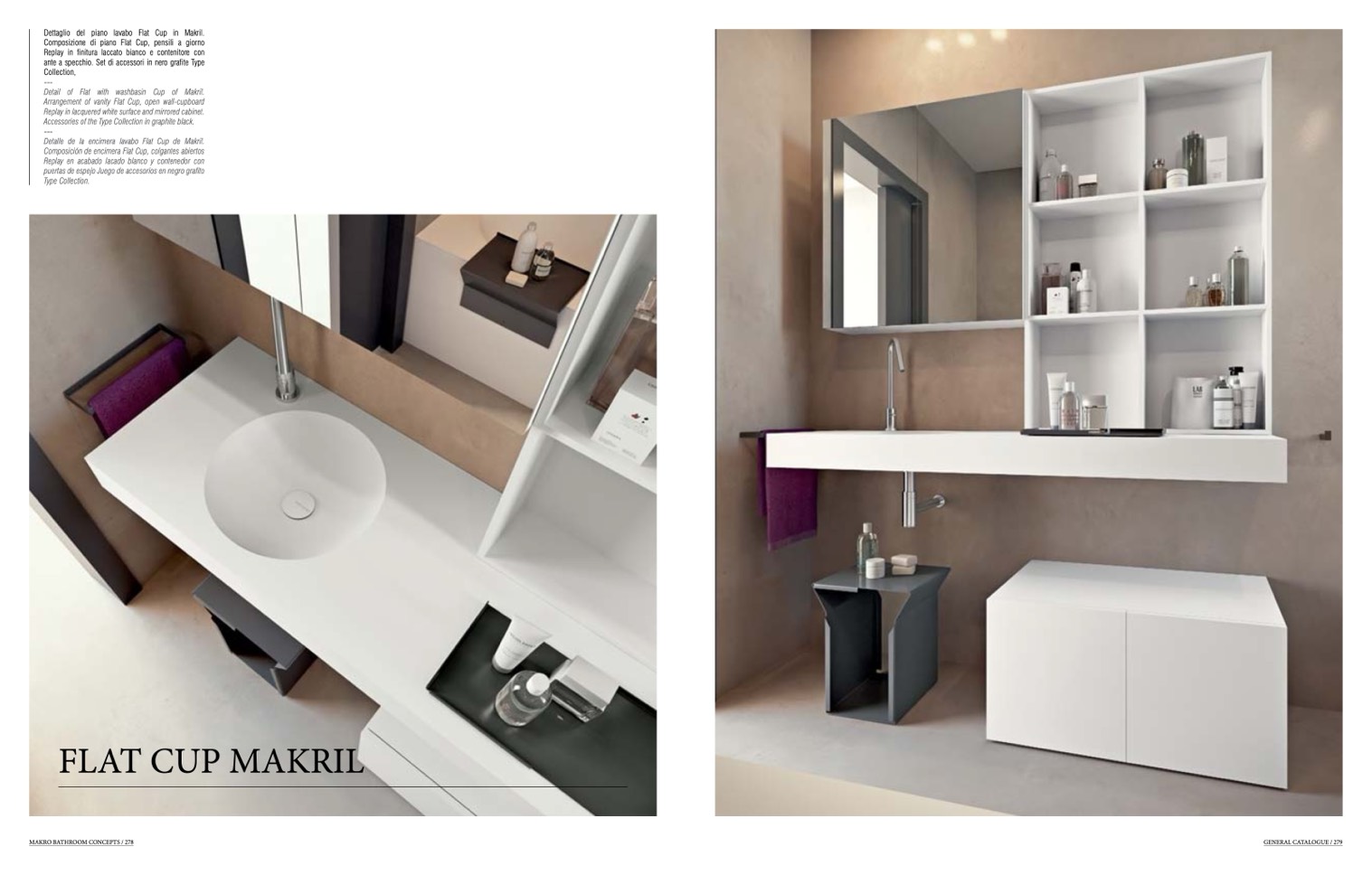 Dettaglio del piano lavabo Flat Cup in Makril.