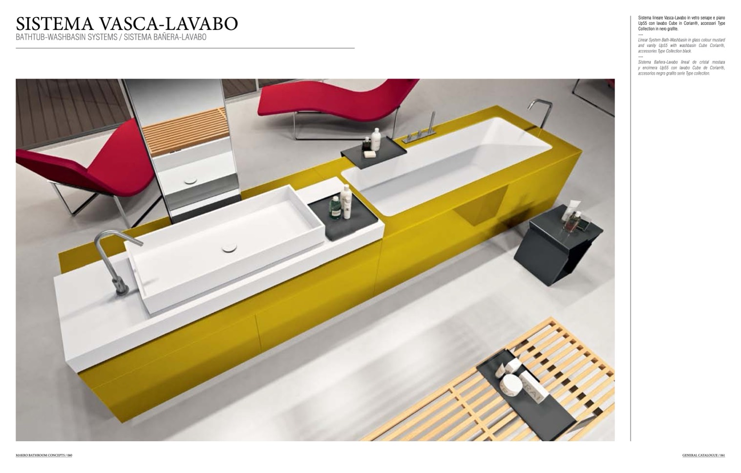 Sistema Bañera-Lavabo lineal de cristal mostaza