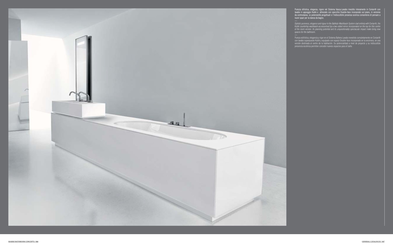 Stylistic pureness, elegance and rigour in the Bathtub-Washbasin System clad entirely with Corian®, the