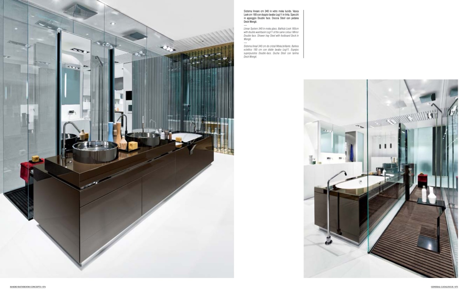 Sistema lineare cm 340 in vetro moka lucido. Vasca