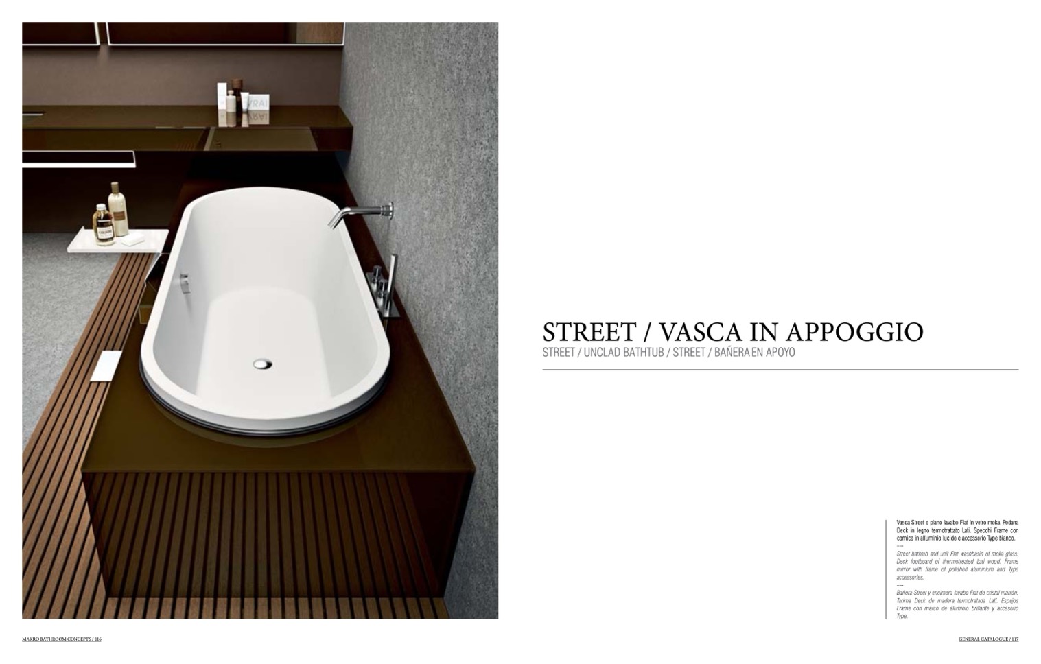 Vasca Street e piano lavabo Flat in vetro moka. Pedana