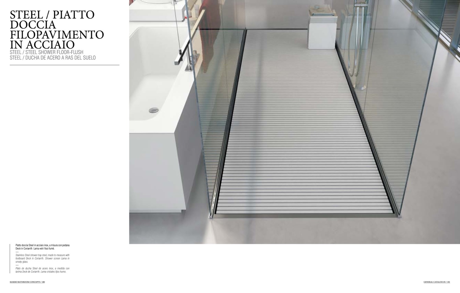footboard Deck in Corian®. Shower screen Lama in