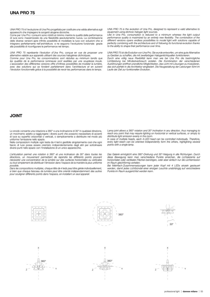 Lamp joint allows a 360° rotation and 30° inclination in any direction, thus managing to