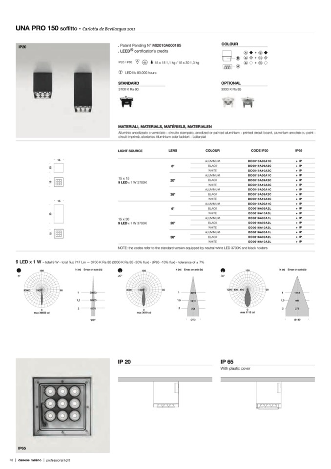 NOTE: the codes refer to the standard version equipped by neutral white LED 3700K and black holders