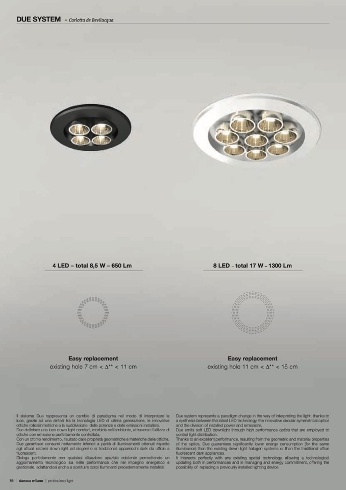 Due definisce una luce down light comfort, morbida nell’ambiente, attraverso l’utilizzo di