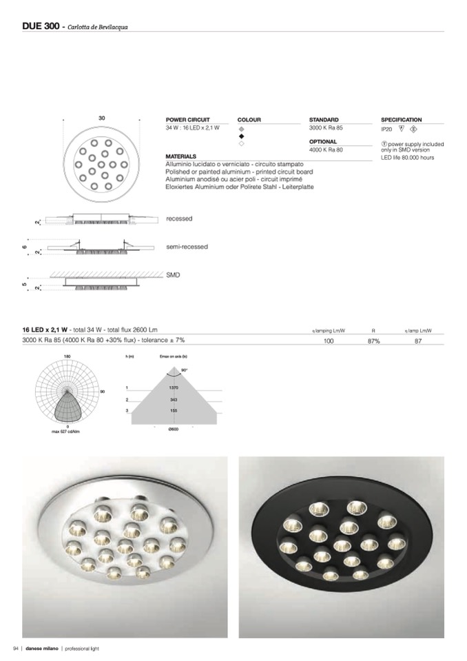 16 LED x 2,1 W - total 34 W - total flux 2600 Lm