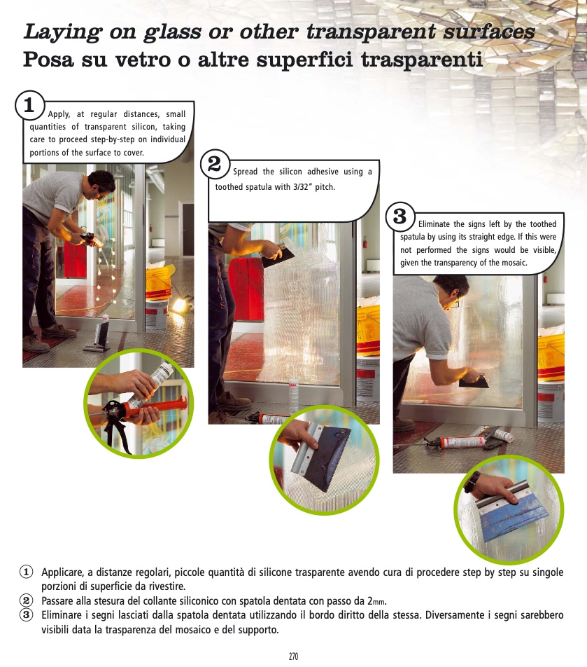 2 Passare alla stesura del collante siliconico con spatola dentata con passo da 2mm.