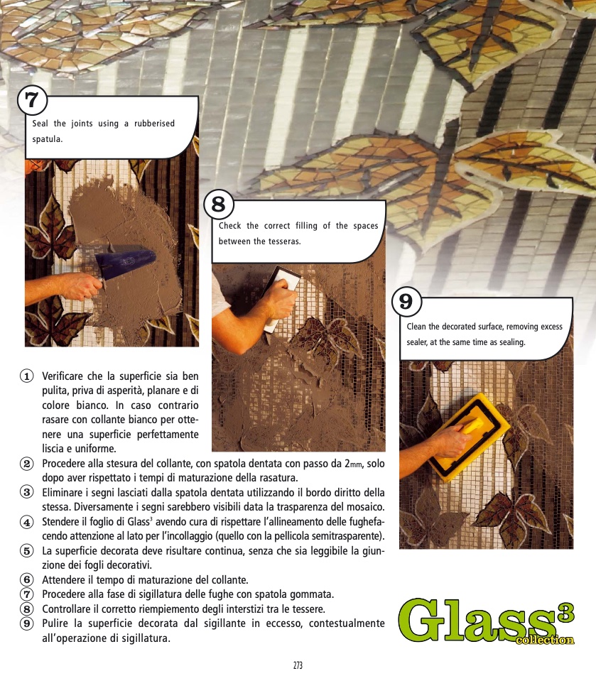 8 Controllare il corretto riempiemento degli interstizi tra le tessere.