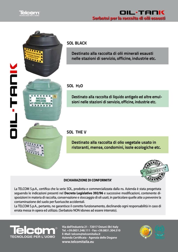 Serbatoi per la raccolta di olii esausti