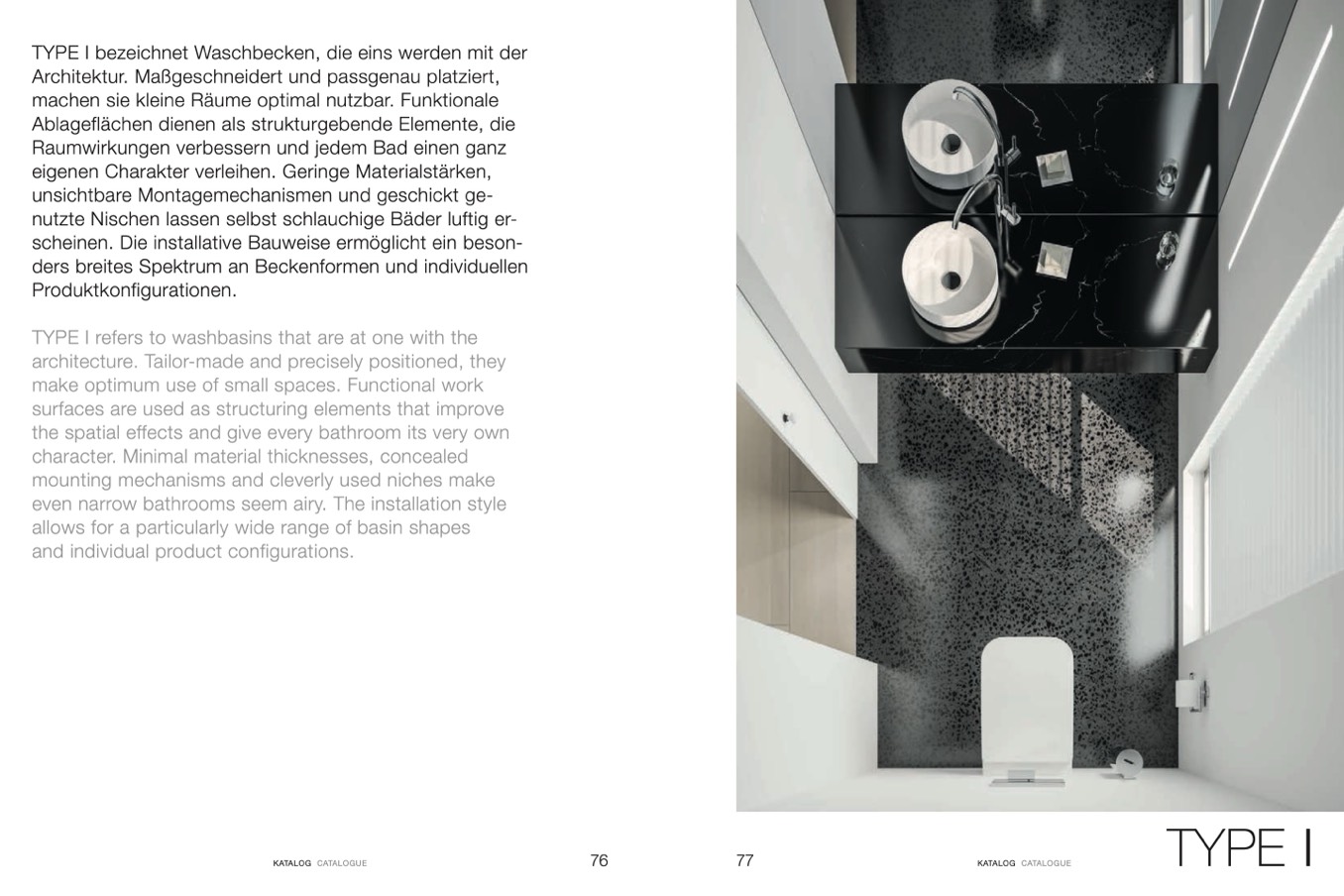 TYPE I bezeichnet Waschbecken, die eins werden mit der