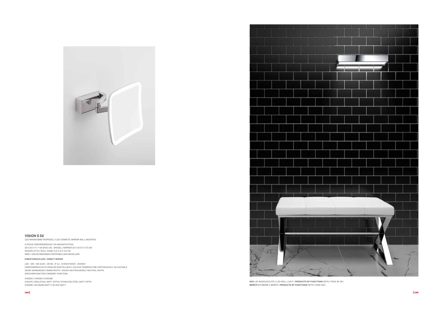 BOX LED WANDLEUCHTE / LED WALL LIGHT | PRODUCTS BY FUNCTIONS SEITE / PAGE 36–38 |