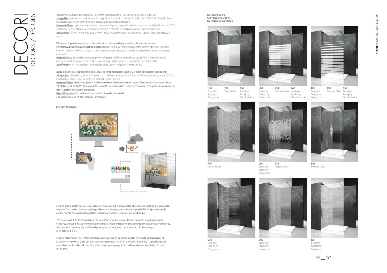 We use multiple technologies to decorate and customize the glass of our shower enclosures: