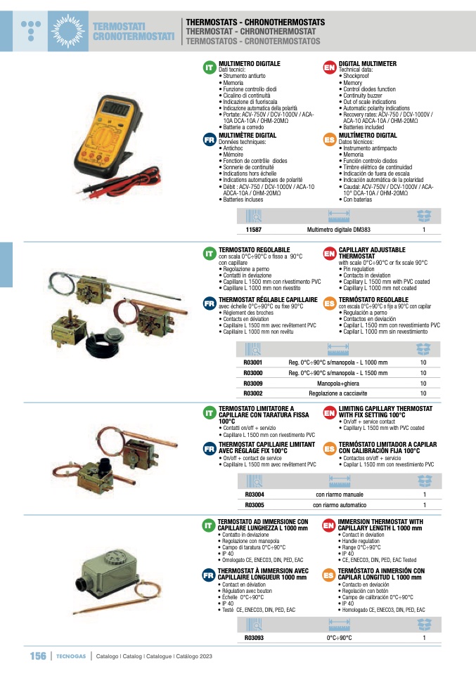 con escala 0°C÷90°C o fijo a 90°C con capilar