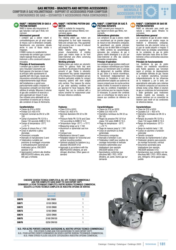 N.B.: PER ALTRE PORTATE CHIEDERE QUOTAZIONE AL NOSTRO UFFICIO TECNICO-COMMERCIALE
