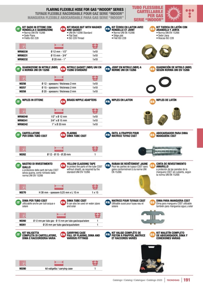 Ø 12 mm per tubo gas - Ø 15 mm per tubo gas/acqua/solare