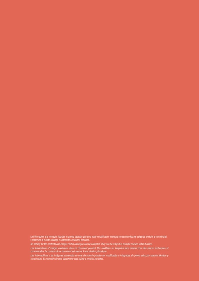 Le informazioni e le immagini riportate in questo catalogo potranno essere modificate o integrate senza preavviso per esigenze tecniche e commerciali.