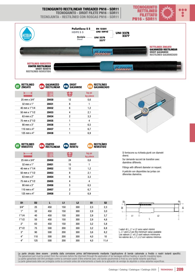 The galvanized part must be protect from the corrosion before the interment through the application of tar bandages without heating or specific insulating tapes.