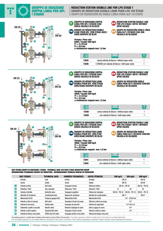DATI TECNICI GRUPPI DI RIDUZIONE I STADIO - TECHNICAL DATA LPG FIRST STAGE REDUCTION GROUP