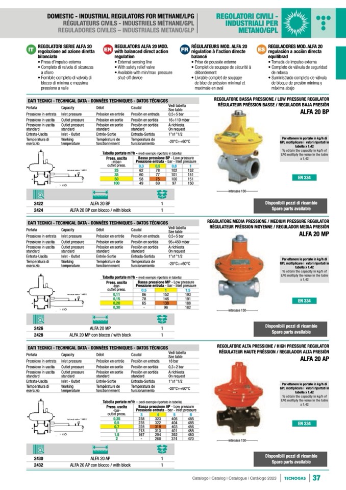 DOMESTIC - INDUSTRIAL REGULATORS FOR METHANE/LPG