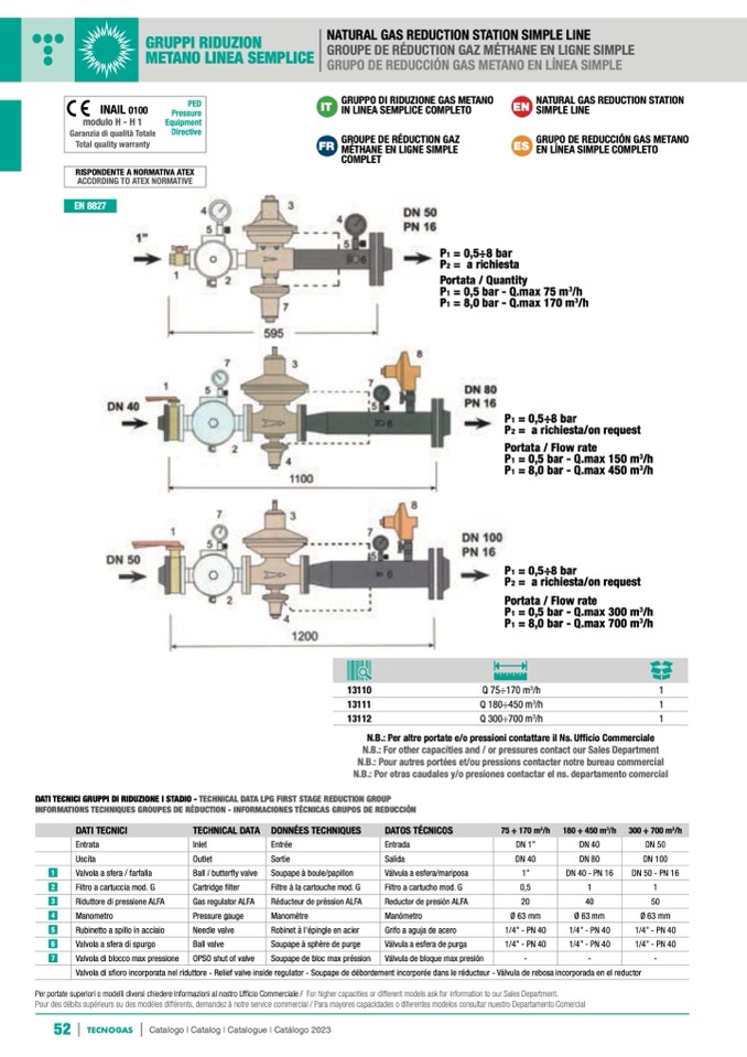 DATI TECNICI GRUPPI DI RIDUZIONE I STADIO - TECHNICAL DATA LPG FIRST STAGE REDUCTION GROUP
