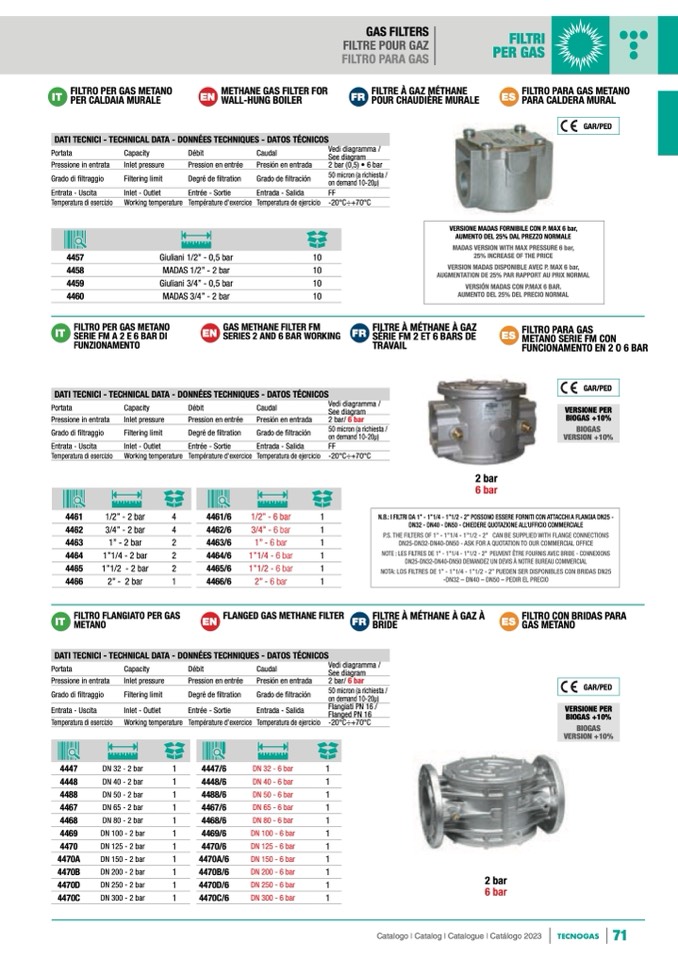 NOTA: LOS FILTRES DE 1” - 1”1/4 - 1”1/2 - 2” PUEDEN SER DISPONIBLES CON BRIDAS DN25