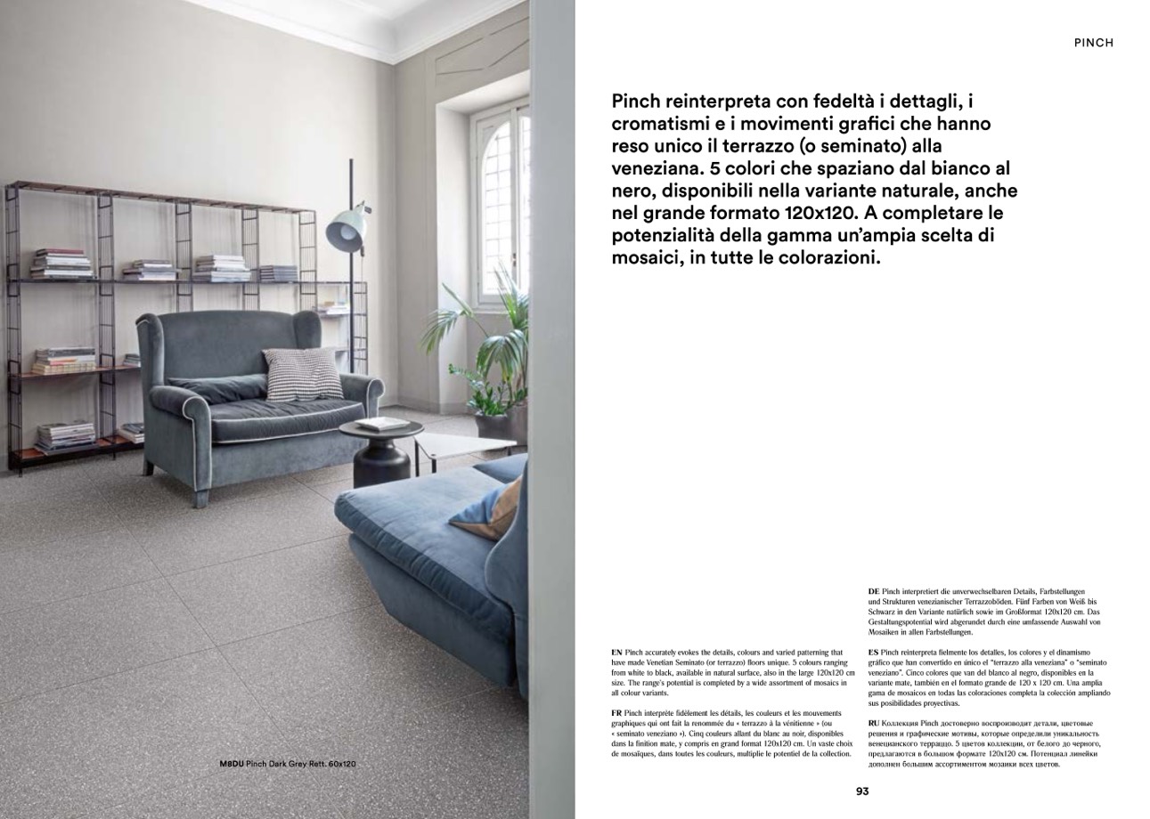 « seminato veneziano »). Cinq couleurs allant du blanc au noir, disponibles